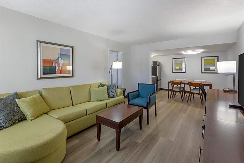This nonsmoking suite has two bathrooms, air conditioning, refrigerator, microwave and sofa.
